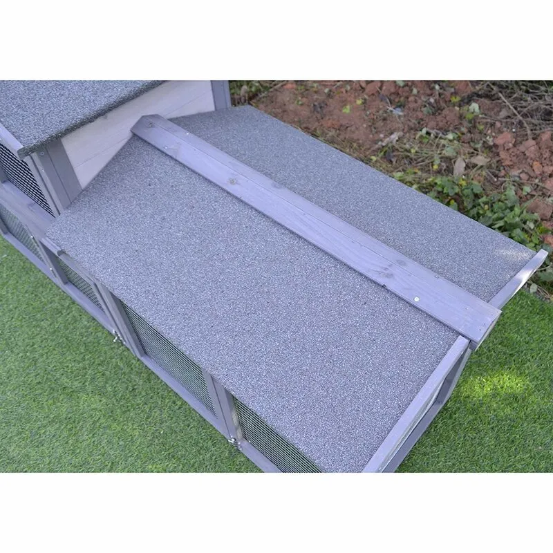Give your furry friend a comfortable and safe place to call home with this Raised Painted Deluxe Wood Rabbit Hutch with Run. It will provide your pets with ample space to exercise and move around. The raised habitat with locking doors protects your small animals from the elements as well as from predators. An internal ramp provides quick and easy access to the enclosed hutch from the run.